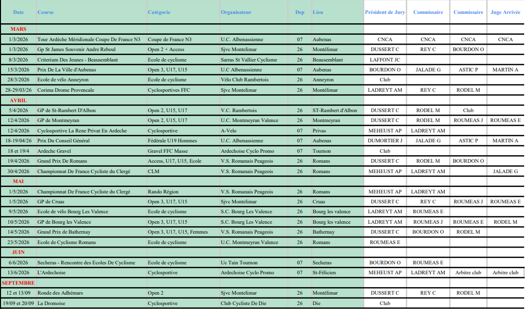 Désignation des arbitres route 2026